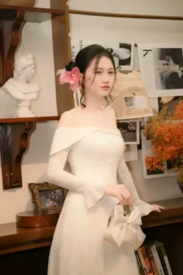 — Styling có thể là len mềm, áo khoác lông, váy voan nhẹ hoặc trang phục tối giản.